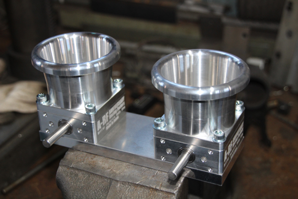 | 2Rotor 2ローター Aluminum Billet Throttle body Frange For Intake Manifold BorePitch 120mm インテークマニホールド製作用 アルミビレットスロットルボディーフランジ ボアピッチ 120mm |